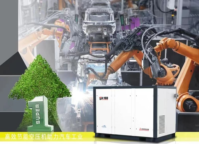 汽车整机生产中的空压机中在冲压、焊接、总装、涂装等工艺要求7*24小时的高品质空压机要求。其中的涂装工艺更需要有满足ISO8573的0级无油级的压缩空气需求。